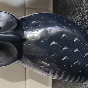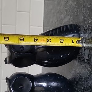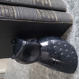 Vintage Hand Carved Black Stone Onyx Owl Shaped Office Library Bookends