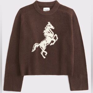 Chic brown sweater with a bold horse motif. Ideal for casual wear.
