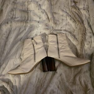 Elegant ivory boots with a modern heel. Perfect for a stylish look.