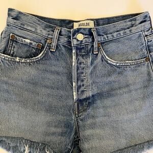 AGOLDE Parker Long Short 25 Medium Wash Wheel Cutoff Button Fly 4" Inseam