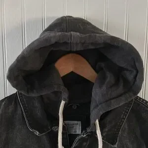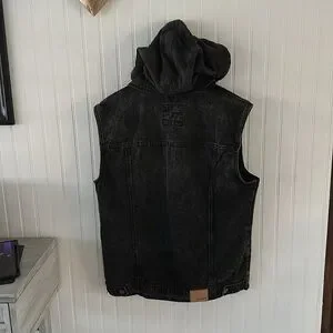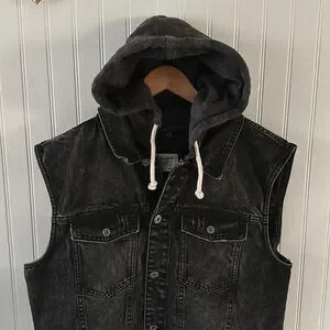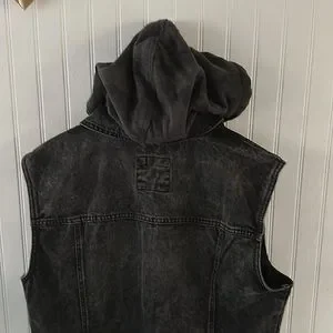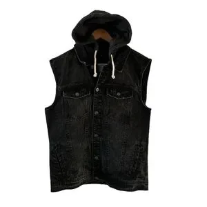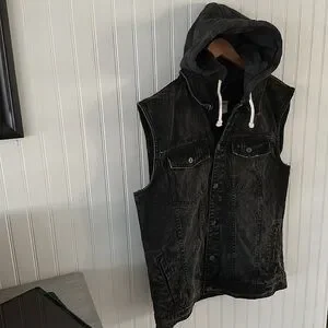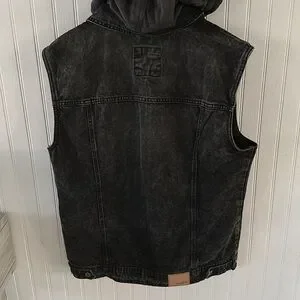 Pull & Bear Charcoal Gray Denim Hooded Vest Jacket XL