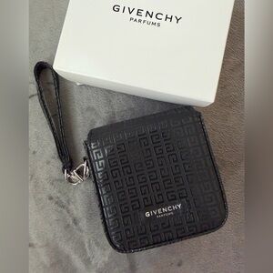 ** BRAND NEW IN BOX GWP ** Chic Givenchy wristlet in black. Features striking logo embossing and a silver metal closure. Includes a detachable strap. Use it to hold money, ID, key, or store your AirPod Pros!