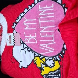 NWT Peanuts Red and Pink Be My Valentine Crew Neck Sweater Size Large