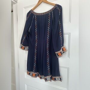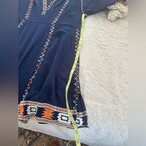 Boho navy tunic dress featuring vibrant orange and white embroidery. Size Medium- great condition. Please make offer !
