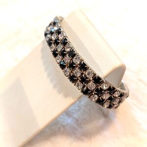 Vintage 3 rows of black and white rhinestone stretchy bracelet.