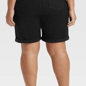 8” inseam. Ava and Viv size 16 W black stretchy shorts. The bottoms of these shorts are a raw hem.