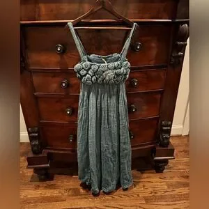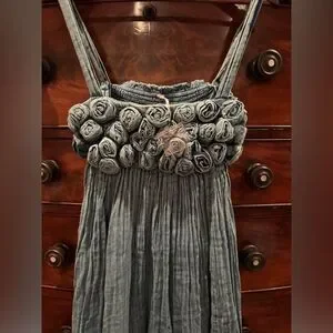 Features: Square neckline, smocking at back, side pockets, pleating throughout, soft textured fabrication, adjustable shoulder straps