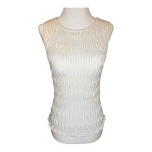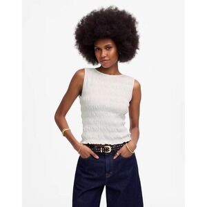 Madewell Smocked Boatneck Tank Top White XS Sleeveless Square Neck Ruffled Hem