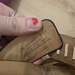 On the heel area of one insole there is a price tag sticker that is partially stuck. *see picture