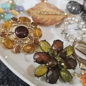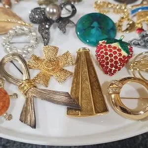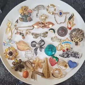 Mixed in are Vintage and some modern pcs. Some of the older ones will reflect some wear. Please see photos. The pics of the brooches upside-down, are the only ones stamped (9). I will throw in some additional ones to the pot that I find along the way. ☺️