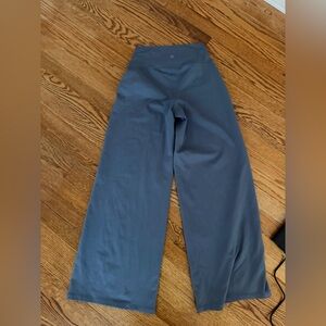 Thick legging material or thin sweatpants, but an athletic material. Wide leg bottom. Never worn.