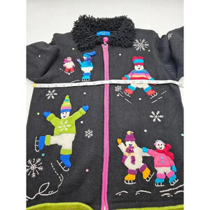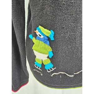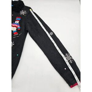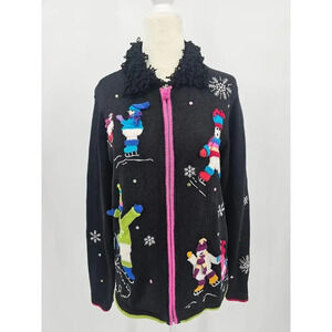 Karen Scott Sport Women's S Black Christmas Snowman Zip Up Holiday Sweater