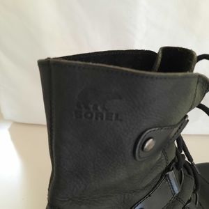 Chic Sorel ankle boots. Rugged sole. Secure lace-up style. Ideal for winter wear. Love these, but I have a baby now and I worry about wearing these and carrying a car seat around.