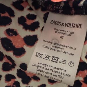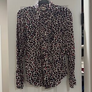Zadig and Voltaire Stylish button down shirt with bold pink and navy blue animal print. Perfect for a trendy look or a day to night outing.