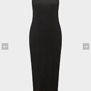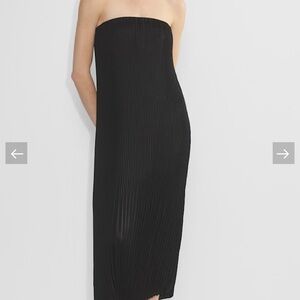 This is a strapless dress with all-over pleats and a slim fit. It's cut from drapey double-faced satin with a soft sheen and luxurious next-to-skin feel. NWT