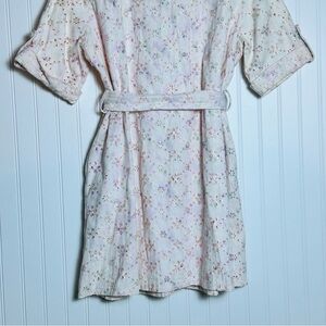 SOLITAIRE TIE DYE PINK FLORAL EYELET BARBIE BARBIECORE SHIRT DRESS BELTED XL