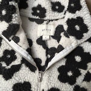 Hyfve LA Lily Floral Print Sherpa Jacket Adorable- Black & White Size Large EUC