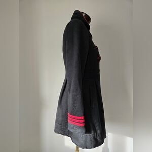 KNITTED DOVE ANTHROPOLOGIE Back and Red Cotton Lined Coat. Size Med