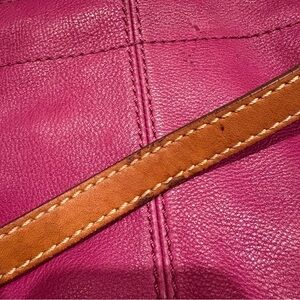 Vtg Fossil Magenta Hobo Double Strap Hobo Pebbled Leather Shoulder Crossbody Bag. Top zipper access. Short strap and long adjustable strap. Cotton lining with interior zipper pocket and slip pockets.