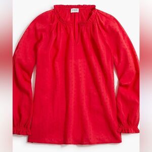 J. Crew novelty artist Swiss dot Vibrant Red split neck Top