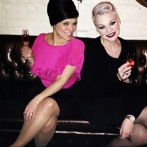 BADGLEY MISCHKA ruffle pink rear V Blouse retro overlay women’s medium blouse