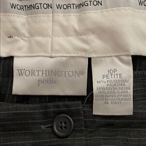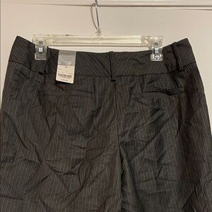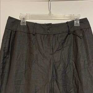 Chic charcoal trousers with subtle pinstripes. Ideal for professional settings. Sleek and stylish.