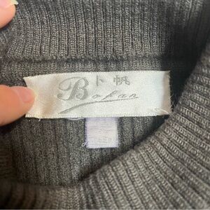Timeless vintage Bofan sweater made from 100% wool, featuring a classic argyle front panel in rich, earthy tones of sage green, charcoal gray, and soft taupe. A beautifully crafted late-1980s to early-1990s knit with a polished mock neck and ribbed sleeves and back.