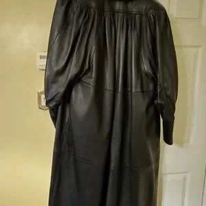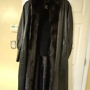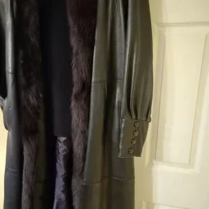 Luxurious Black Leather Trench Coat with Fur Trim