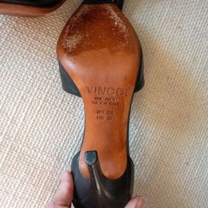 Vince Claire Choked Up Leather D'Orsay Pumps, size 5.5. Gently used, well taken care of! Fits true to the European size 35--I am sometimes a 5.5, but always an EU size 36, and these were a half size too small for me. Gorgeous stylish black leather pumps.