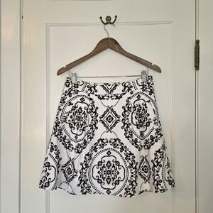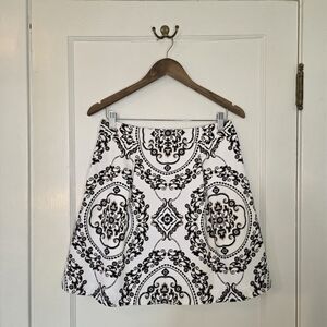 This elegant skirt by White House | Black Market features a black and cream damask pattern set against a crisp white background. It has two pleats in the front and back, as well as an attached slip and a zipper closure at the side; the pockets are surprisingly roomy. Pair it with a blazer for a day at the office, or a cute top for a night out on the town.