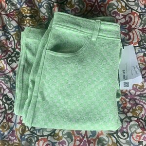 Zara neon green checkered trousers, size medium. New with tags. Super cute and flattering. Waist measures 14 3/4 inches flat across. Fit more like a small, imo.