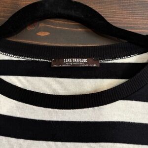 Zara Black and White Striped Cropped Long Sleeve Top Large
