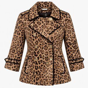 White House Black Market Leopard Print Coat Swing Jacket Womens Size 8
