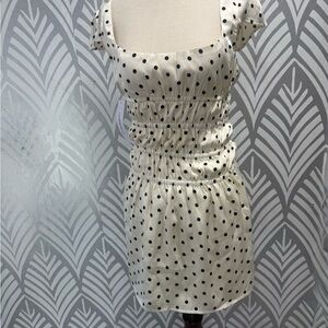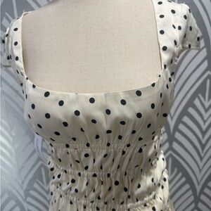 NWOT Princess Polly Evangelie Ruched Black and White Polka Dot Mini Dress