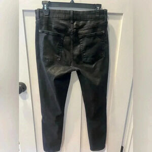 A coveted skinny jean finds sleek definition with a high-sheen coated finish reminiscent of sleek leather. A rich, black hue offers polished style to both casual and elevated looks, while easy-wearing stretch ensures all-day comfort. Faux front pockets, ankle length. Can't go wrong pairings include graphic tees, blouses, and chunky knits.