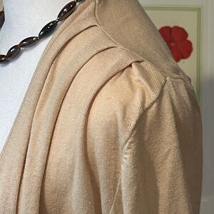 • Features: Unique pleated/ruched shoulder detail for a tailored look, ribbed hem and cuffs