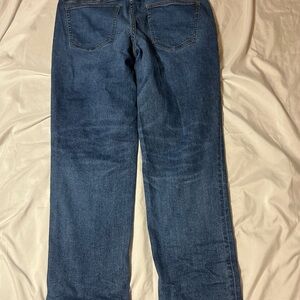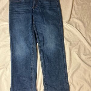 Lands' End Womens SZ 12 Petite High Rise Straight Leg Jeans Dark Wash Blue Denim