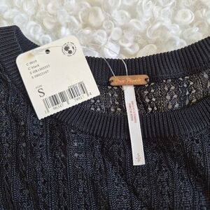 BNWT Free People H20 Crew Pullover S Raw Garnet Black Sheer Pointelle Edgy Y2K