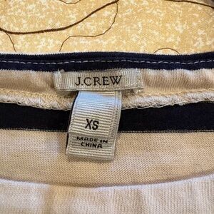 This J. Crew Jeweled Embellished Striped Long Sleeve Top Cream Beige top with very deep navy accents. The fit can vary, with some descriptions mentioning a relaxed fit or a "garçon" fit, which is somewhere between a classic and relaxed style. Some versions may also have features like princess darts for a more tailored and feminine fit. Women’s XS GUC see measurements to insure an accurate fit for you. Thanks for looking!