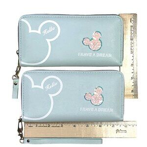 Minnie Mickey Mouse Wristlet Clutch Convertible Long Wallet Disney Theme Blue