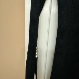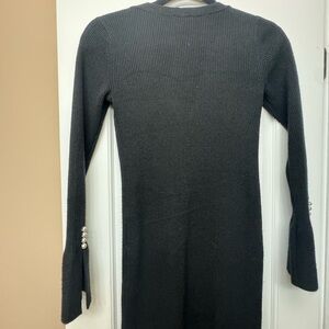 Ann Taylor Black PEARLIZED BUTTON CUFF V-NECK SWEATER DRESS - Size XS