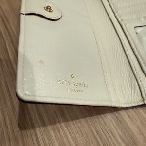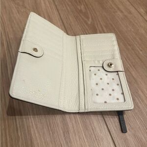 Elegant black leather wallet with gold logo detail. Sleek and stylish design.