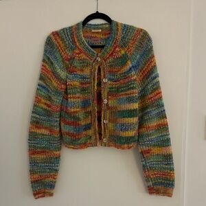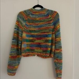 Brighten your look with this colorful striped cardigan. Features a button-up front and cozy knit texture.