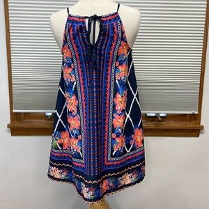 Flying Tomato Blue Hawaiian Floral Print Boho Sleeveless Mini Dress Size XS
