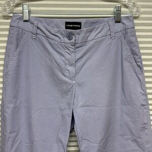 EMPORIO ARMANI Light Purple Lightweight Cotton Back Embroidery Logo straight leg Pants made in Italy