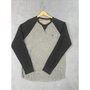 American Eagle Outfitters Thermal Shirt Men XL Gray Black Logo Crew Neck Y2K
