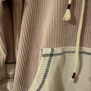 Cozy POL hooded sweatshirt with hood in a size medium. Features front pocket and drawstrings. Ribbed texture adds style. Super cute and cozy 💕
