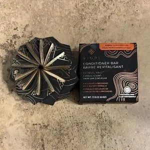 Experience the luxurious Viori Conditioner Bar in a sleek black and gold design. Infused with a refreshing citrus scent, this bar revitalizes your hair with its rich, eco-friendly formula. Perfect for those seeking a sustainable and effective hair care solution.