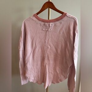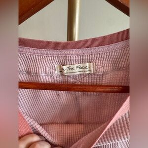 Keywords: Free People thermal, We The Free top, waffle knit, boho casual, oversized crop top, pink long sleeve, comfy lounge top, FP essentials