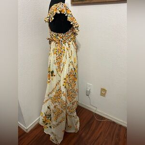 Farm Rio Cashew Ruffle Crossback Off White & Yellow Floral Maxi Dress - XS